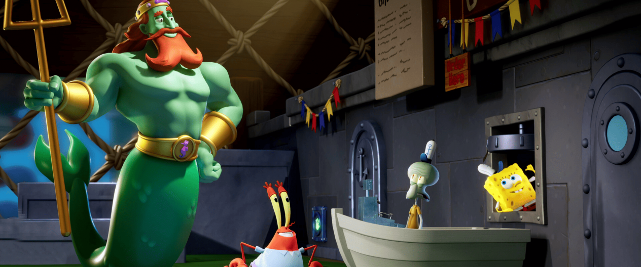 Боссы выглядят куда интереснее. Схватки с Летучим Голландцем, Нептуном и Сэнди в усиленном скафандре зависят от умения вовремя считывать атаки и реагировать на смену фаз. Игра не превращает эти схватки в хардкорное испытание, но заставляет хотя бы немного двигаться и использовать платформинг, а не только бить по одной кнопке. Между боями попадаются небольшие головоломки: переключать рычаги, переносить взрывоопасные предметы или пользоваться призрачной формой Патрика.